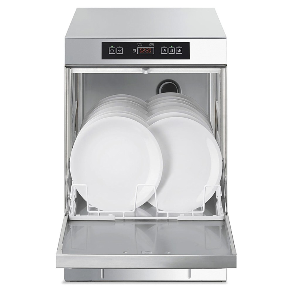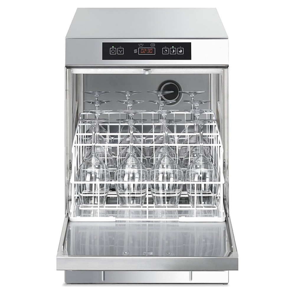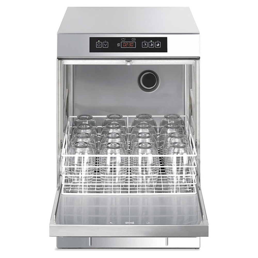 Стаканомоечная машина Smeg UG405DMS серии Ecoline используется на предприятиях общественного питания и торговли для мойки стаканов, чашек и бокалов. Модель оснащена электронной панелью управления. Корпус выполнен из нержавеющей стали AISI 304.