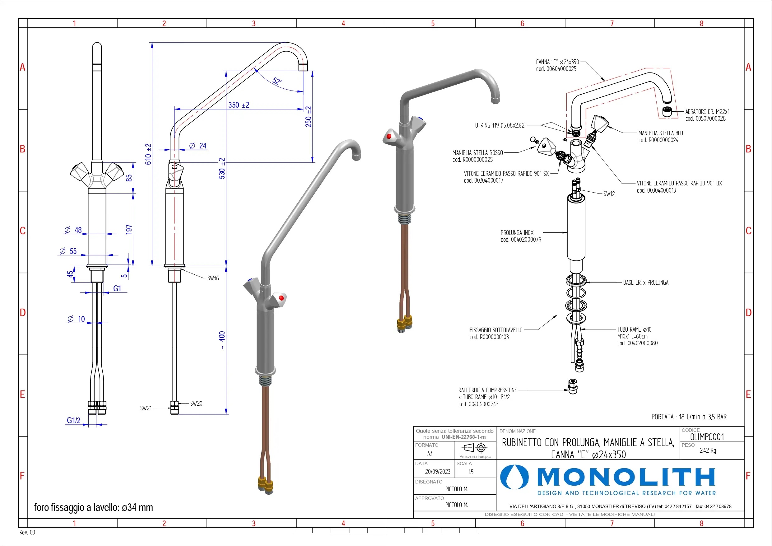 Смеситель Monolith OLIMPO001 предназначен для ежедневного использования с целью подачи воды оптимальной температуры на кухнях и в санитарных узлах предприятий общественного питания и торговли. Внешние компоненты выполнены из металла с хромированной поверхностью, удлинительная стойка – из нержавеющей стали марки AISI 304, удлинительная стойка – из нержавеющей стали марки AISI 304, жесткие трубки подводки – из меди.