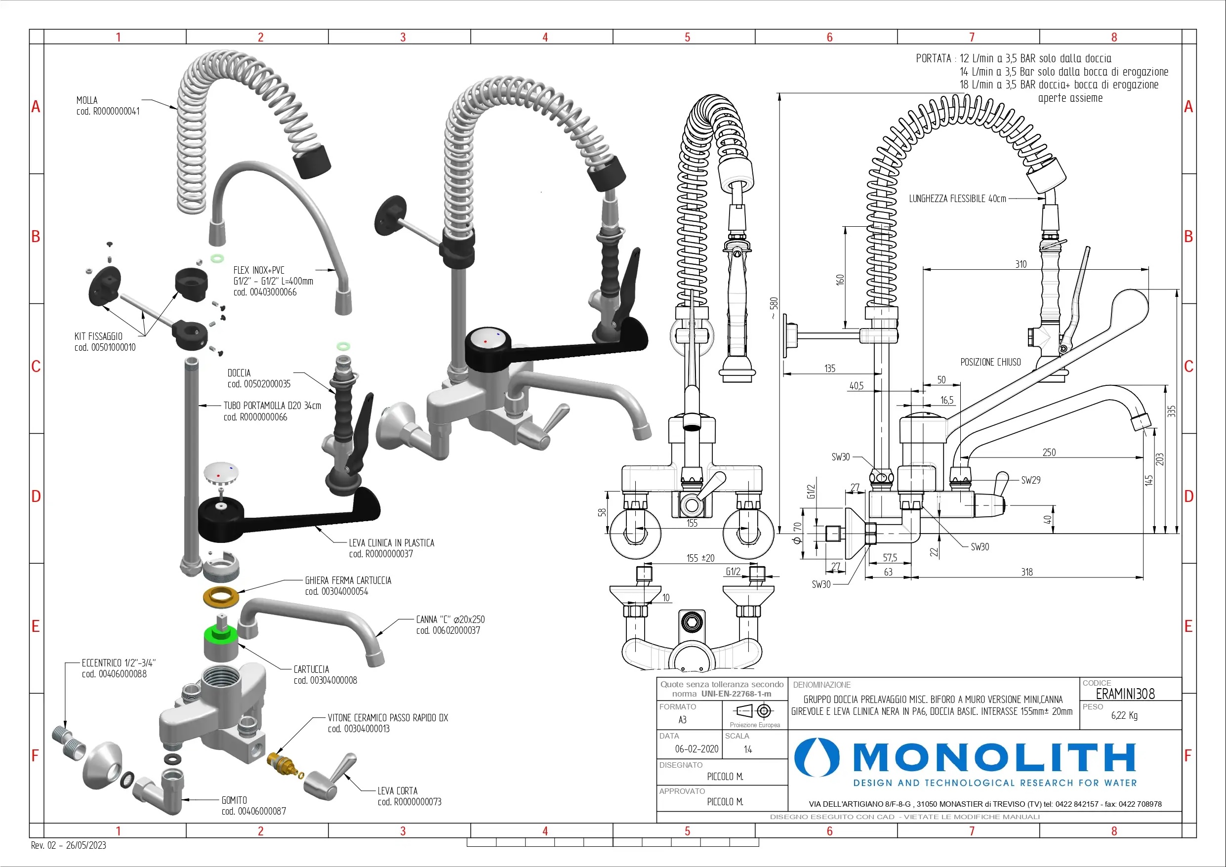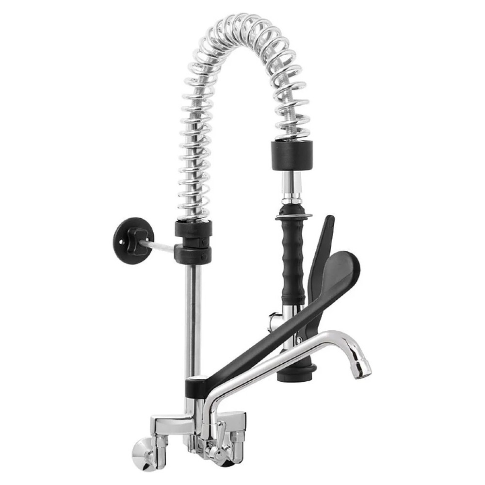 Смеситель с душирующим устройством Monolith ERAMINI308 предназначен для ежедневного использования с целью подачи воды оптимальной температуры, предварительного ополаскивания посуды, а также мойки фруктов и овощей на кухнях пекарен, столовых, кафе, ресторанов и других предприятий общественного питания. Компоненты выполнены из металла с хромированной поверхностью и черного термопластика, гибкий душевой шланг – из поливинилхлорида (ПВХ) и нержавеющей стали, локтевая рукоятка – из черного нейлона (PA6).