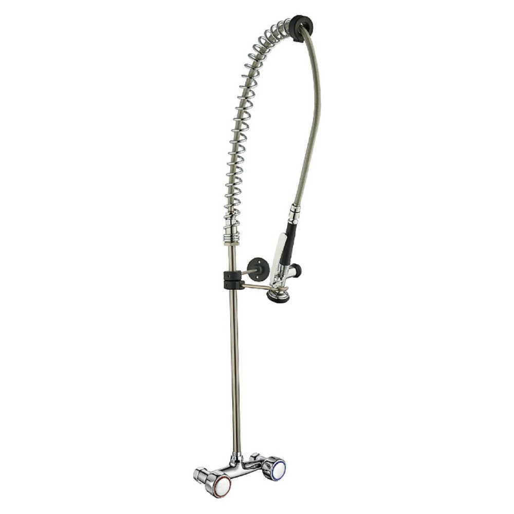 Душирующее устройство для печей и пароконвектоматов AIRHOT PR-350W используется для предварительной очистки посуды перед загрузкой её в посудомоечную машину, а также для мытья овощей и фруктов в моечных цехах на предприятиях общественного питания. Модель оснащена смесителем для горячей и холодной воды и кронштейном для крепления на стену. Корпус изготовлен из латуни, шланги - из нержавеющей стали.