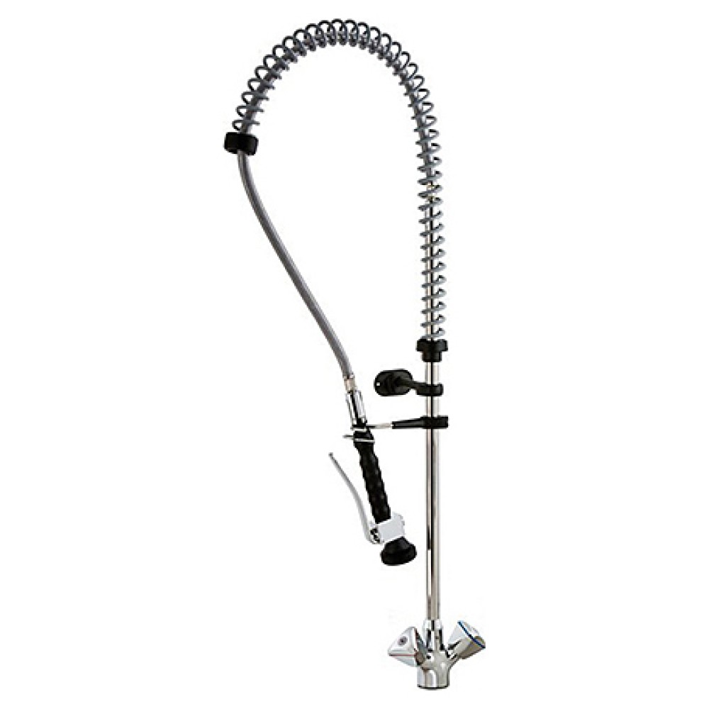 Душирующие устройство Klarco 2S.2403.19N.S3 предназначено для удобного удаления крупных остатков пищи с кухонной посуды и инвентаря перед загрузкой в посудомоечную машину в моечных цехах, а также для мытья фруктов и овощей в раковинах на предприятиях общественного питания. Изделие оснащено гибким высоким шлангом на пружинной оплетке. Модель выполнена из нержавеющей стали, устойчивой к царапинам, коррозии и известковому налету, кронштейны изготовлены из армированного стекловолокном нейлона со стальными сердечниками.