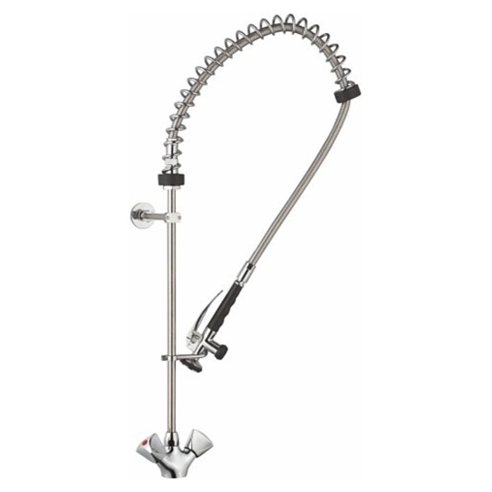 Душирующие устройство Kocateq 9077012M предназначено для разбора и предварительного ополаскивания посуды перед ее загрузкой в посудомоечную машину на предприятиях общественного питания. Корпус изделия и вертикальная стойка выполнены из полированной нержавеющей стали, гибкая трубка, подводящая воду к душирующей головке - с оплеткой из нержавеющей стали.