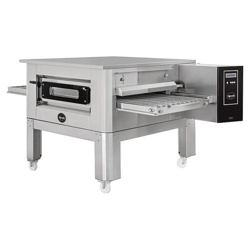 Конвейерная печь Apach AMT 80 предназначена для выпекания пиццы, хлебобулочных и кондитерских изделий, запекания овощей и других блюд на предприятиях общественного питания и торговли. Модель с электронной панелью управления оснащена вентилируемой камерой, электростатическим реле и боковой дверцей, позволяющей контролировать процесс приготовления. Корпус и конвейер выполнены из нержавеющей стали.