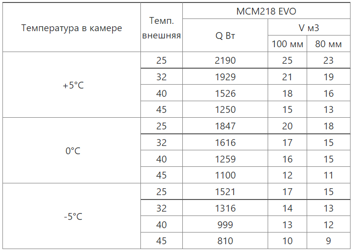 Сплит-системы на объем холодильных камер подобраны при обязательном соблюдении следующих условий эксплуатации: