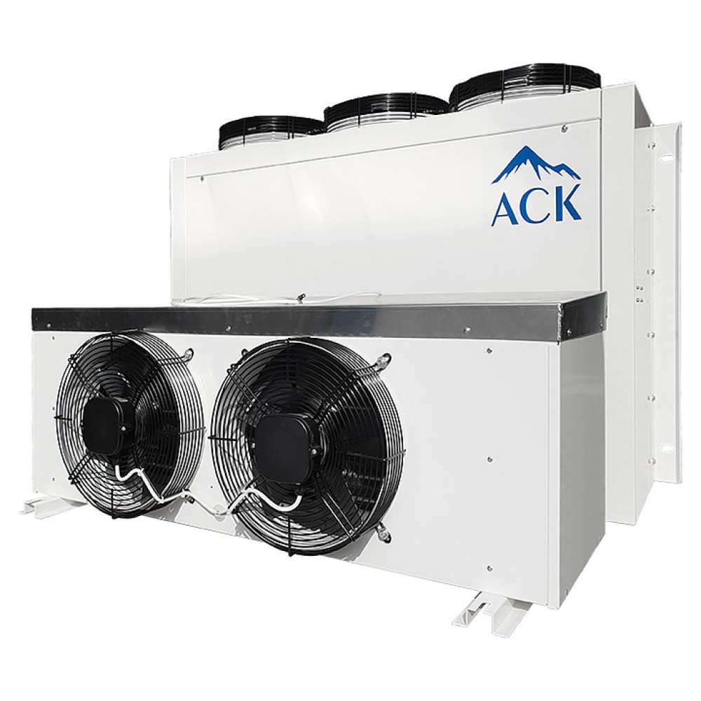Низкотемпературная сплит-система АСК-Холод СН-40 предназначена для поддержания необходимого температурного режима в холодильных камерах на предприятиях пищевой промышленности, общественного питания и торговли. Модель оснащена компрессорно-конденсаторным блоком и воздухоохладителем, соединенными между собой теплоизолированными медными трубками, по которым циркулирует хладагент и выводится конденсат, а также кабелем питания и управления. Корпус изготовлен из оцинкованной стали белого цвета с полимерным покрытием в защитной пленке, трубы конденсатора и испарителя - из меди, ребра - из алюминиевого сплава.