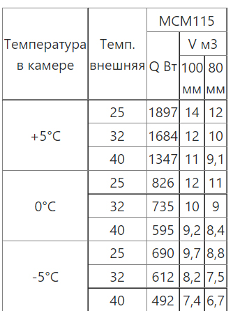 Сплит-системы на объем холодильных камер подобраны при обязательном соблюдении следующих условий эксплуатации: