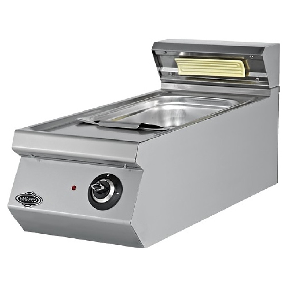 Настольный аппарат Empero EMP.PLS.9DE010 серии 900+ используется на предприятиях общественного питания и торговли для подогрева свежеприготовленного картофеля фри и других аналогичных блюд. Модель оснащена инфракрасным керамическим нагревателем и расположенной на наклонной фронтальной стенке электромеханической панелью управления. Корпус выполнен из высококачественной нержавеющей стали.