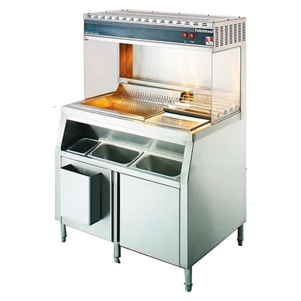 Станция Fabristeel F70-180 предназначена для подогрева и фасовки картофеля фри. Подогрев осуществляется сверху и снизу. Корпус сделан из нержавеющей стали.