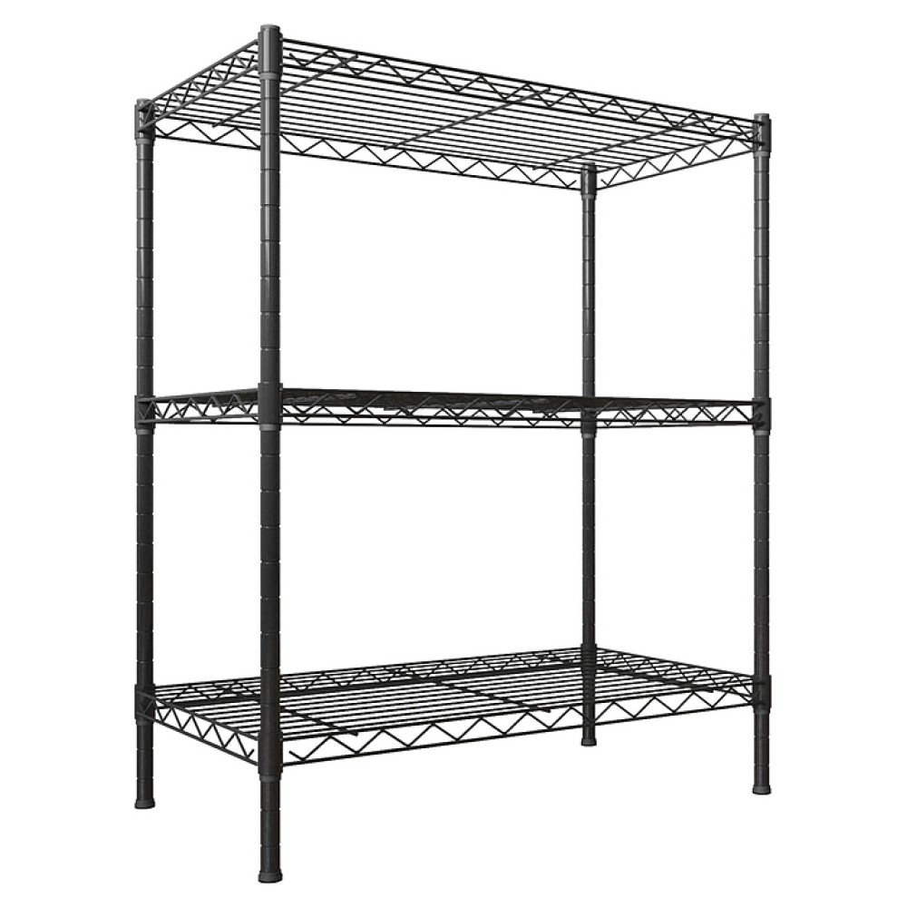 Кухонный стеллаж GASTRORAG 1424-30/3B предназначен для хранения продуктов, не требующих специального температурного режима, посуды и кухонных принадлежностей в офисе, гараже, на складе, даче, дома и на предприятиях общественного питания и торговли. Модель оснащена 4 стойками, 3 сетчатыми полками и регулируемыми ножками. Стеллаж разбирается для удобства транспортировки. Корпус выполнен из окрашенной стали, полки - из стальной проволоки толщиной 2,2, 2,8 и 3,8 мм.