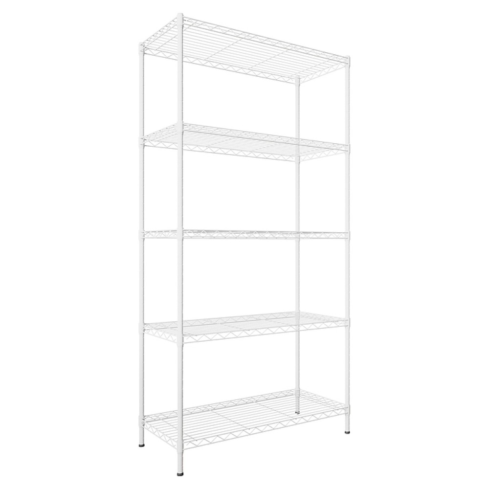 Кухонный стеллаж GASTRORAG 1430-60/5W предназначен для хранения продуктов, не требующих специального температурного режима, посуды и кухонных принадлежностей в офисе, гараже, на складе, даче, дома и на предприятиях общественного питания и торговли. Модель оснащена 4 стойками, 5 сетчатыми полками и регулируемыми ножками. Стеллаж разбирается для удобства транспортировки. Корпус выполнен из окрашенной стали, полки - из стальной проволоки толщиной 2,2, 2,8 и 3,8 мм.