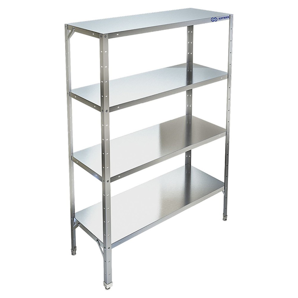 Кухонный стеллаж KAYMAN СК-251/1505 используется на предприятиях общественного питания и торговли, а также в промышленно-производственных заведениях для хранения различного оборудования, кухонных принадлежностей и сухих продуктов. Каркас выполнен из оцинкованного уголка 40х40 мм, полки - из нержавеющей стали AISI 430.