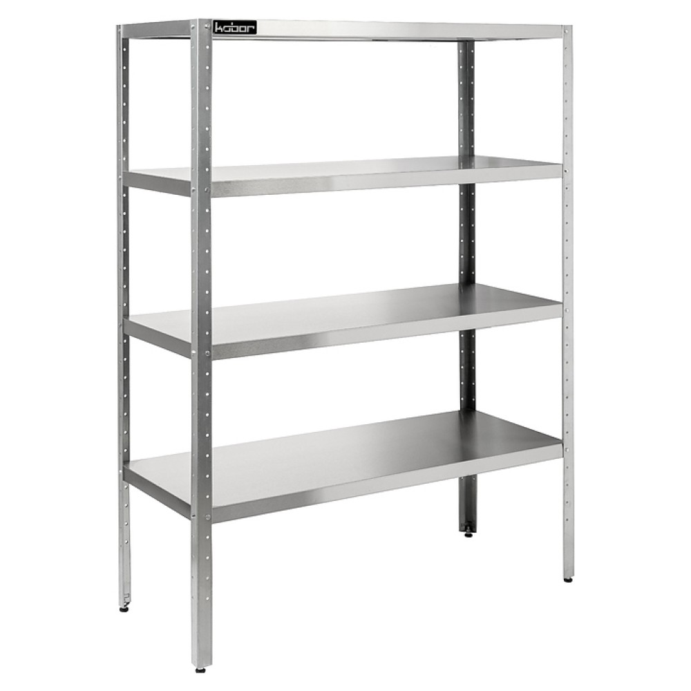 Стеллаж Кобор СК-130/50 предназначен для хранения посуды, кухонной утвари и сухих продуктов на предприятиях общественного питания, торговли и в промышленно-производственных помещениях. Модель оснащена сплошными полками. Каркас выполнен в виде уголка 40х40 мм из оцинкованной стали, полки - из нержавеющей стали AISI 430.