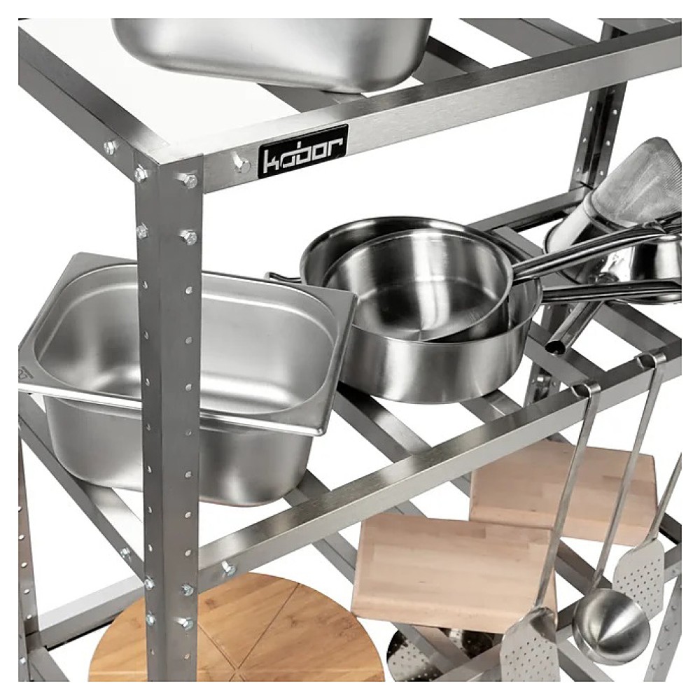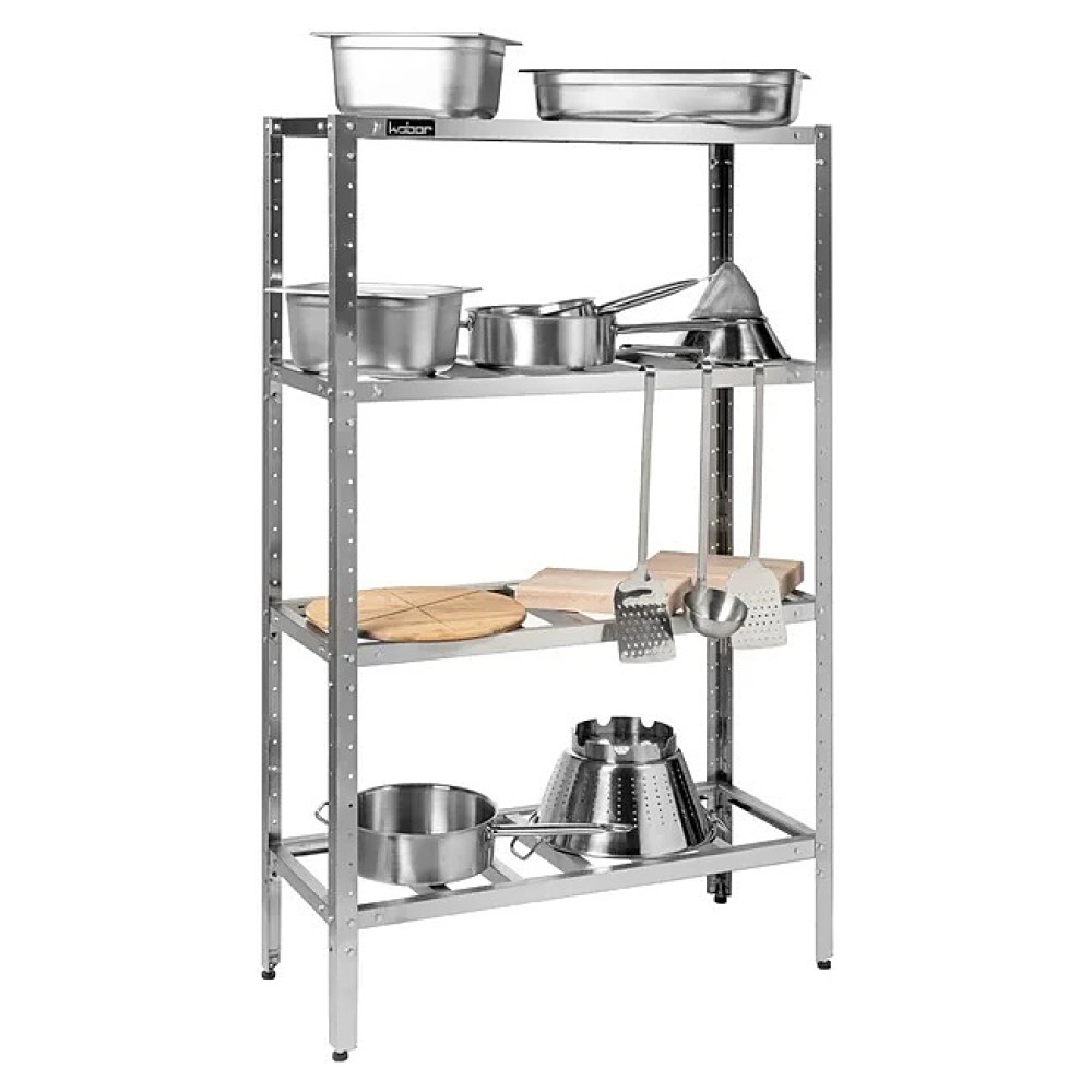Стеллаж Кобор СКР-120/50 предназначен для хранения посуды, кухонной утвари и сухих продуктов на предприятиях общественного питания, торговли и в промышленно-производственных помещениях. Каркас выполнен в виде уголка 40х40 мм из оцинкованной стали, решетчатые полки - из нержавеющей стали AISI 430. Уникальная система крепления полок обеспечивает жёсткость конструкции стеллажа.