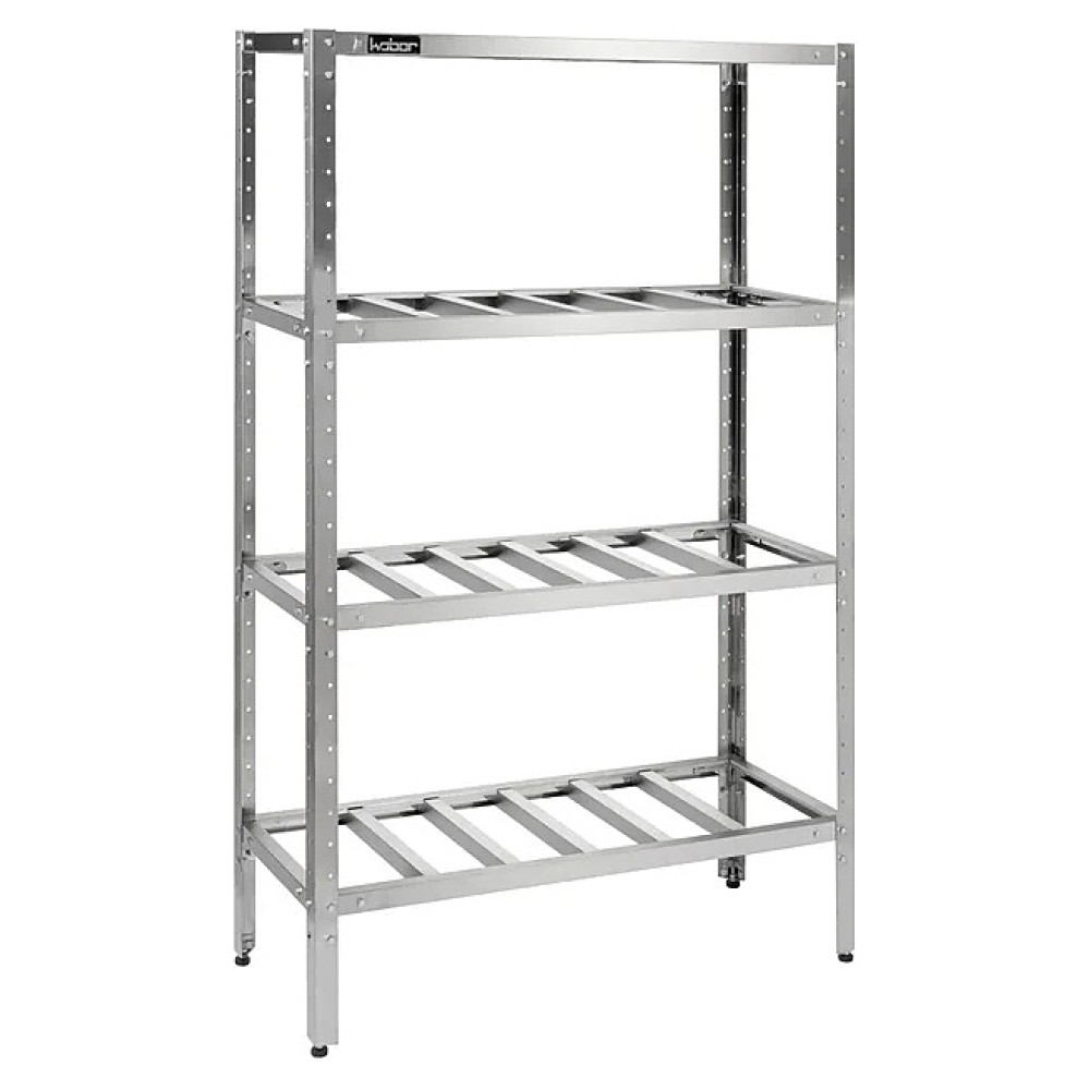 Стеллаж Кобор СКР-150/50/430 предназначен для хранения посуды, кухонной утвари и сухих продуктов на предприятиях общественного питания, торговли и в промышленно-производственных помещениях. Каркас выполнен в виде уголка 40х40 мм из нержавеющей стали, решетчатые полки - из нержавеющей стали AISI 430. Уникальная система крепления полок обеспечивает жёсткость конструкции стеллажа.