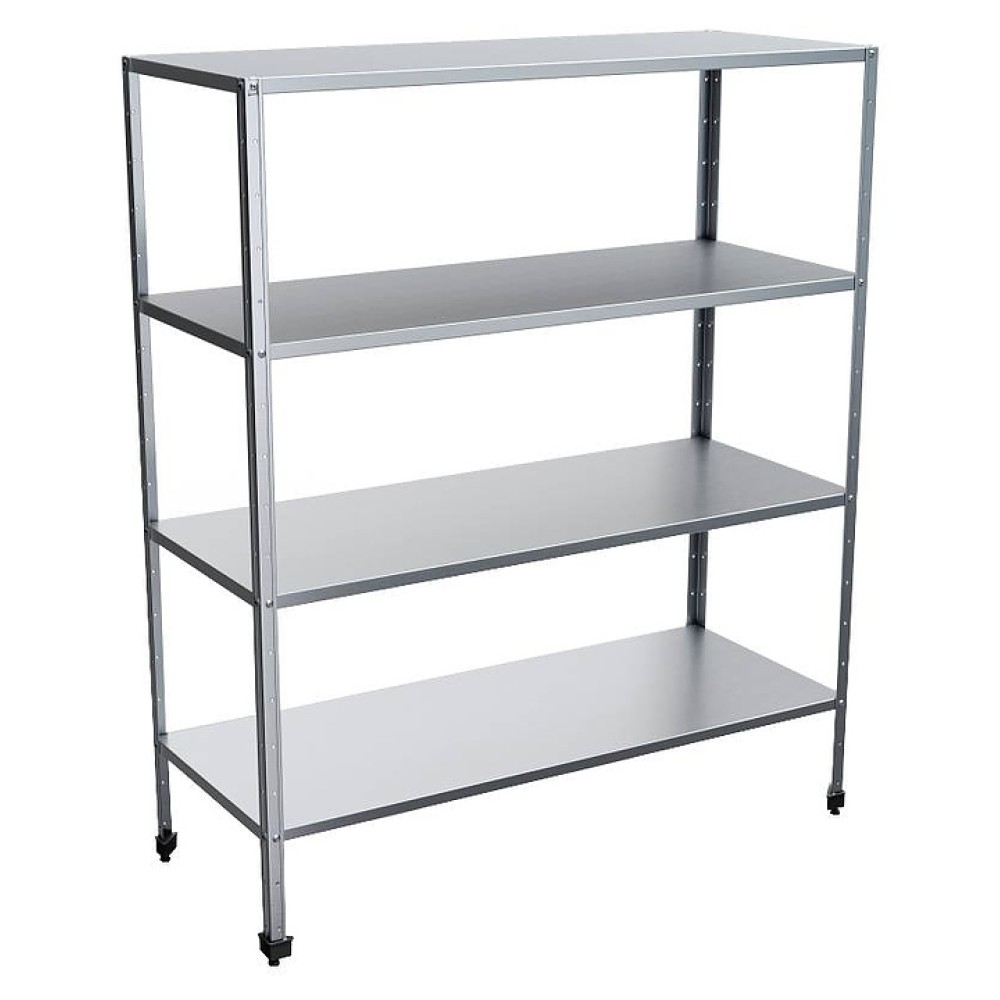 Кухонный стеллаж Rada СКСПЧ-16/5/0,4/0,4/18-4П предназначен для хранения посуды, инвентаря и сухих продуктов на предприятиях общественного питания и торговли. Разборный каркас выполнен из тубы 40x40 мм нержавеющей стали AISI 430, полки - из нержавеющей стали AISI 430.