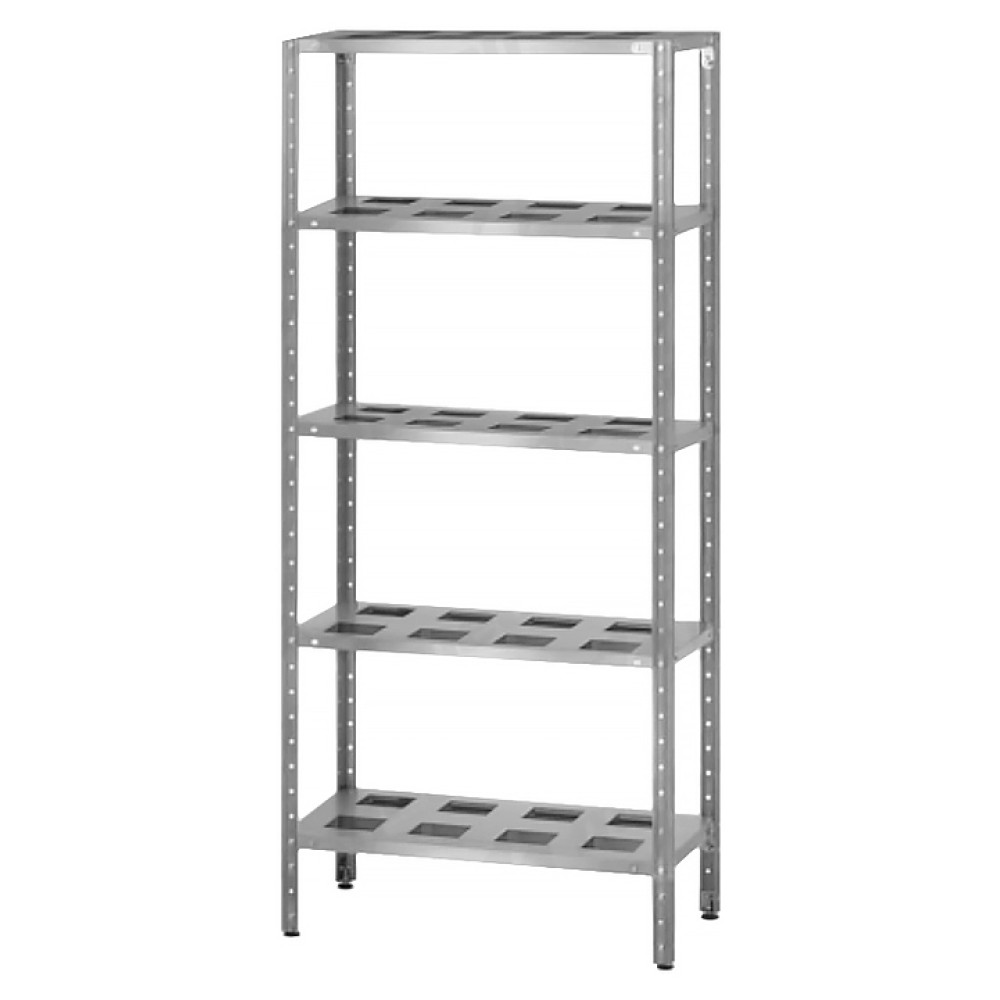 Полочный стеллаж Mecon Norma Inox СПЛн предназначен для хранения посуды, различного инвентаря и сухих продуктов на предприятиях пищевой промышленности, общественного питания и торговли. Модель оснащена 5 регулируемыми по высоте усиленными полками-решетками, угловыми катаными стойками с ребрами жесткости и регулируемыми по высоте опорами. Стойки и полки выполнены из нержавеющей стали.