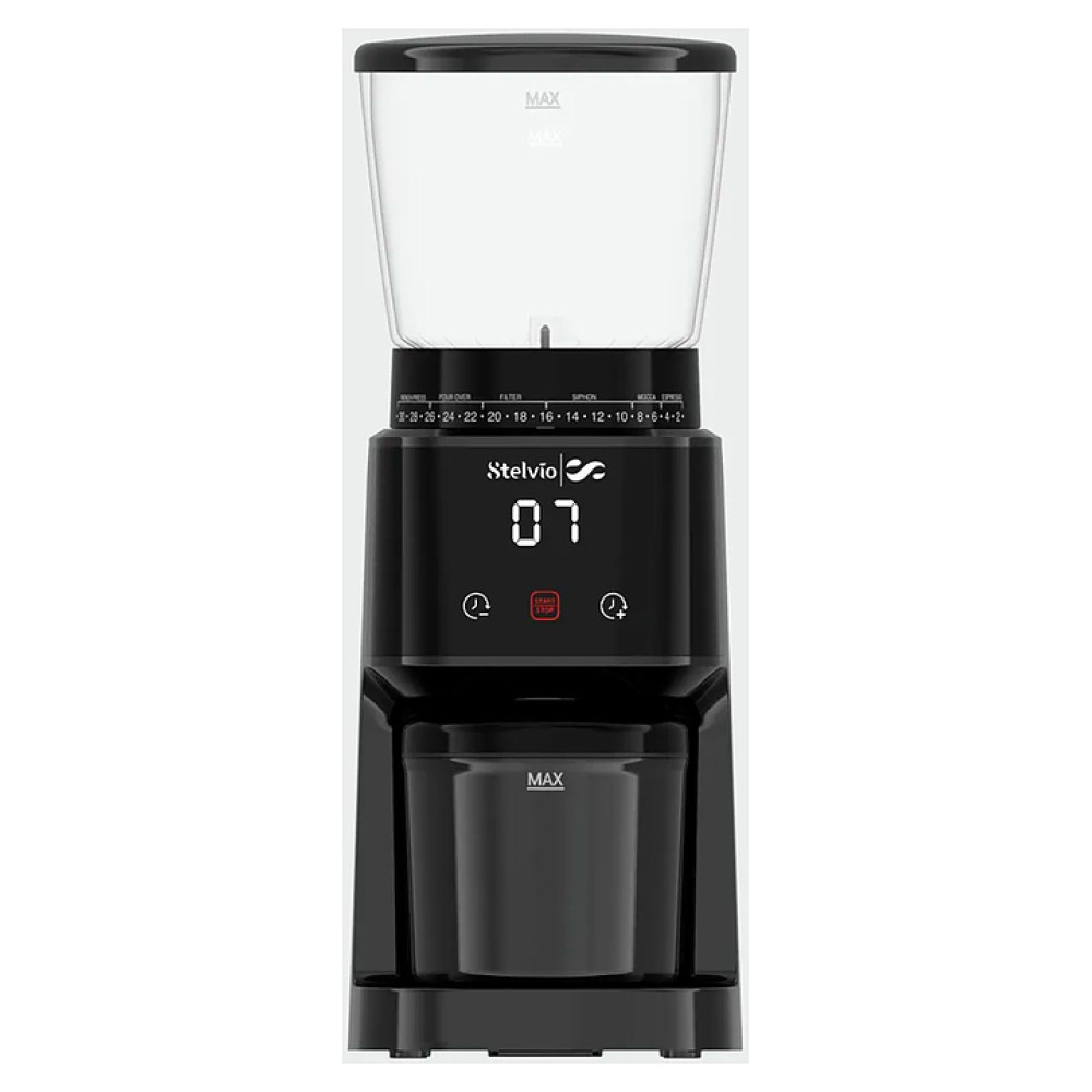Кофемолка Stelvio FR300 предназначена для получения молотого кофе из зерен в частных домах и квартирах. Модель оснащена сенсорной панелью управления, ЖК-экраном, цифровым таймером, встроенной щеткой, съемным верхним жерновом, бункером и камерой. Конические жернова снижают нагрев при измельчении и защищают эфирные масла в кофейных зернах, создают однородную кофейную гущу и сохраняют аромат. Автоотключение, блокировка кнопки включения и защита от перегрева гарантируют безопасную эксплуатацию. Корпус выполнен из пластика, жернова - из нержавеющей стали.