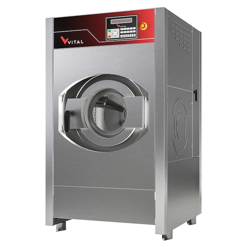 Стиральная машина VITAL VLWE20E используется в прачечных, химчистках и отелях для стирки, полоскания и отжима белья, ткани и одежды. Модель оснащена программируемым микропроцессором и 7-дюймовым сенсорным экраном. Корпус, барабан и бак выполнены из нержавеющей стали.