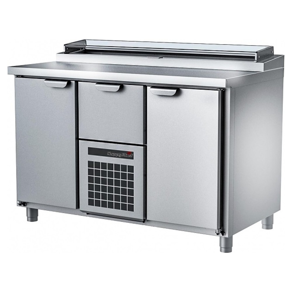 Саладетта HappyChef TC GS 1-CBR-1 предназначена для обработки и сохранения свежести ингредиентов для холодных закусок и салатов на предприятиях общественного питания и торговли. Модель оснащена секцией с компрессорным холодильным агрегатом со съемной холодильной кассетой (Россия) с нижним центральным расположением и верхним выдвижным ящиком, секцией справа с глухой распашной дверью, секцией слева с глухой распашной дверью, усиленной столешницей, салат-баром с прозрачной крышкой и электронной панелью управления, двери и ящик имеют короткие горизонтальные рукоятки в верхней части. Корпус выполнен из нержавеющей стали марки AISI 430, столешница – из нержавеющей стали марки AISI 304.