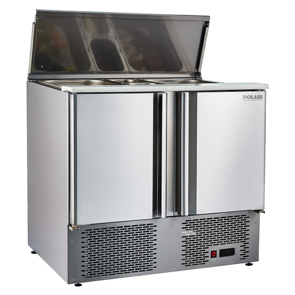 Холодильный салат-бар POLAIR TMi2GNsal-G предназначен для кратковременного хранения ингредиентов для приготовления салатов на предприятиях пищевой промышленности, общественного питания и торговли. Модель оснащена раздвижной двухсекционной крышкой и механизмом самозакрывания дверей. Корпус внутри и снаружи выполнен из пищевой нержавеющей стали, цельнозаливной пенополиуретаном, доска - из полипропилена, полки - из окрашенной оцинкованной проволоки.
