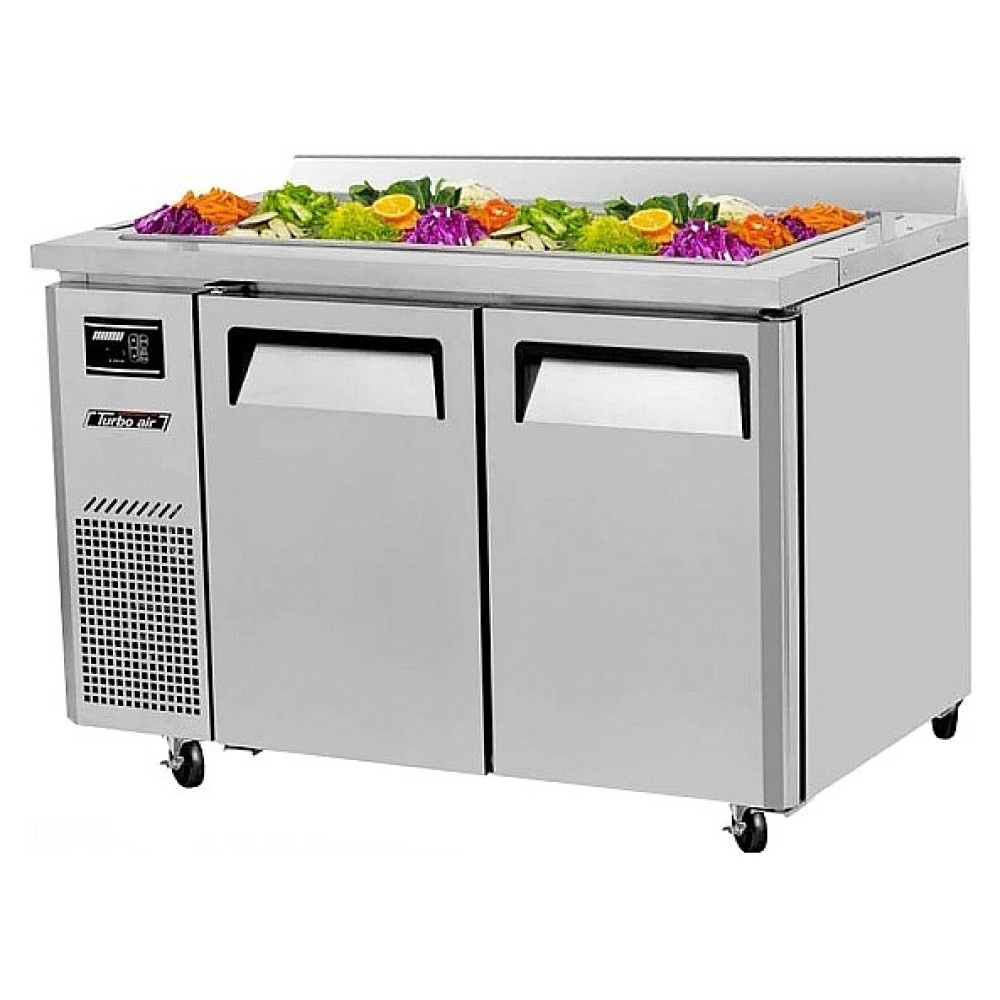 Холодильный салат-бар Turbo air KSWR12-2-700 предназначен для кратковременного хранения ингредиентов для приготовления салатов на предприятиях пищевой промышленности, общественного питания и торговли. Модель оснащена 2 дверцами с эргономичными ручками, 2 регулируемыми полками и 4 колесами. Корпус выполнен из нержавеющей стали (гальванизированная сталь на оборотной стороне и внизу), пол - из нержавеющей стали с алюминиевыми вставками по бокам и сзади, дверные петли и направляющие для гастроемкостей - из высококачественной нержавеющей стали, полки - из толстой стальной проволоки с виниловым покрытием, уплотнение - из ABS-пластика.