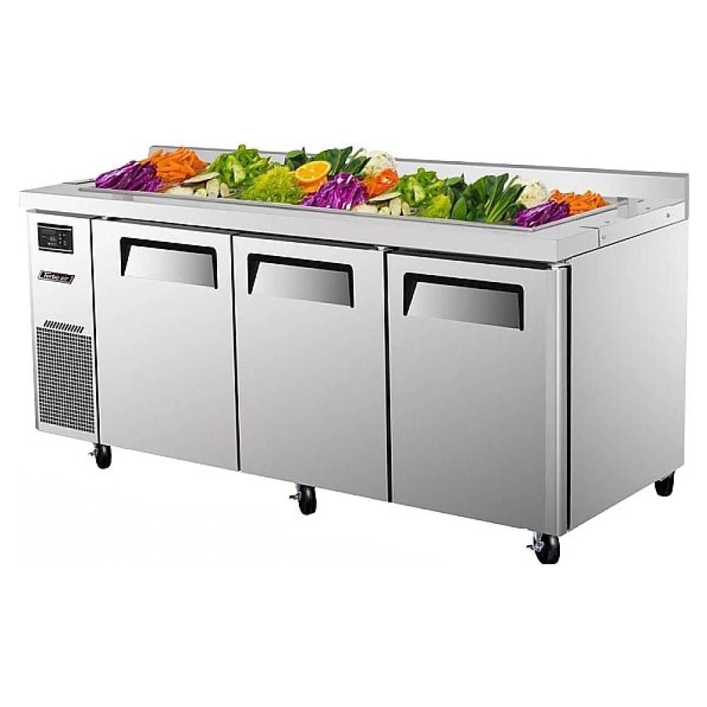 Холодильный салат-бар Turbo air KSWR18-3-700 предназначен для кратковременного хранения ингредиентов для приготовления салатов на предприятиях пищевой промышленности, общественного питания и торговли. Модель оснащена 3 дверцами с эргономичными ручками, 3 регулируемыми полками и 6 колесами. Корпус выполнен из нержавеющей стали (гальванизированная сталь на оборотной стороне и внизу), пол - из нержавеющей стали с алюминиевыми вставками по бокам и сзади, дверные петли и направляющие для гастроемкостей - из высококачественной нержавеющей стали, полки - из толстой стальной проволоки с виниловым покрытием, уплотнение - из ABS-пластика.