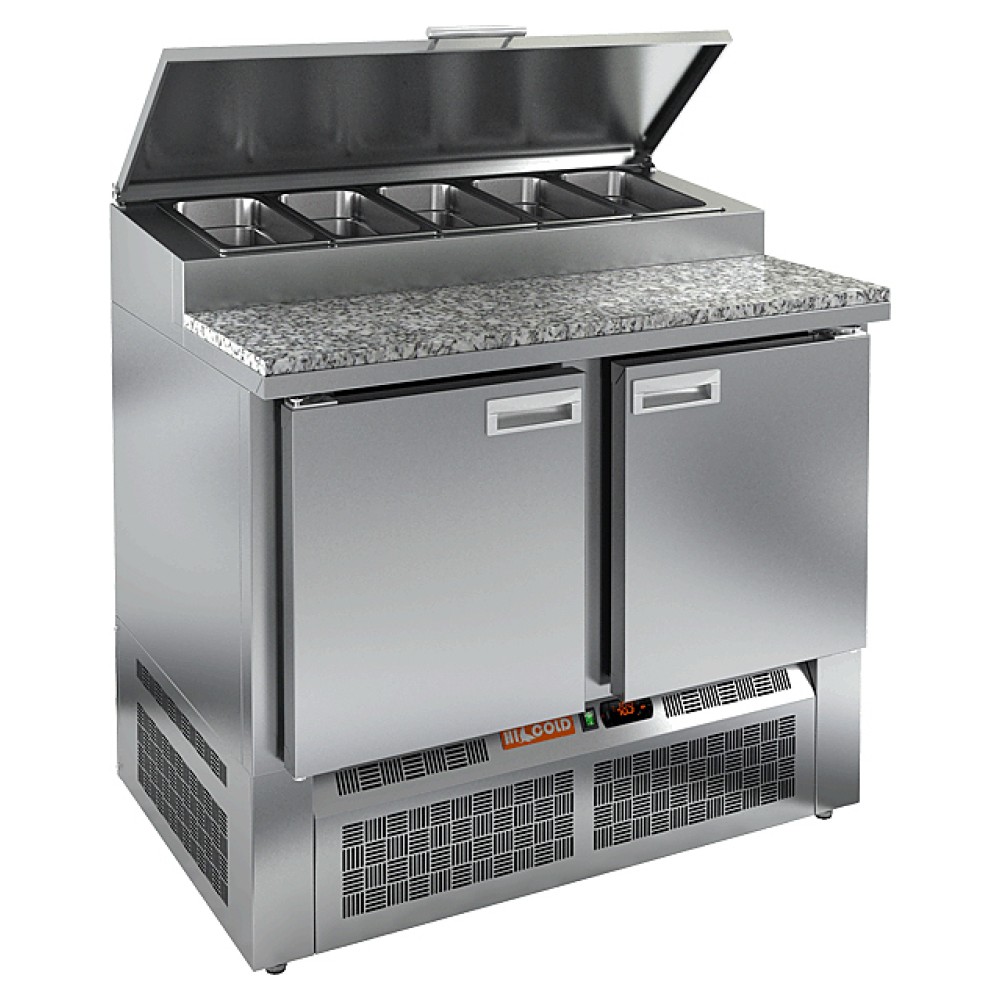 Стол для пиццы HICOLD PZE1-11/GN используется на предприятиях общественного питания и торговли для раскатки теста и обработки ингредиентов, используемых для приготовления пиццы, салатов и других блюд, а также для охлаждения и кратковременного хранения скоропортящихся продуктов и напитков. Модель совмещает в себе рабочую поверхность и охлаждаемый объем, что значительно упрощает работу повара, так как все необходимые компоненты всегда находятся под рукой. Корпус выполнен из нержавеющей стали, столешница - из гранита.