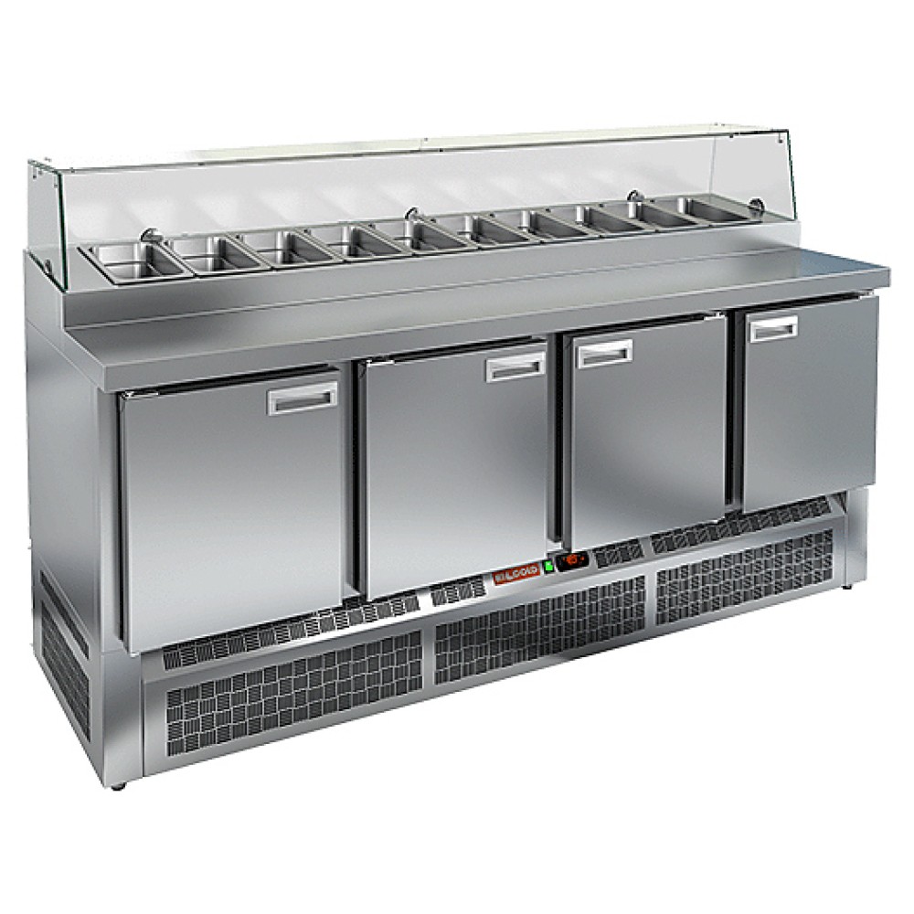 Стол для пиццы HICOLD PZE1-1111/GN используется на предприятиях общественного питания и торговли для раскатки теста и обработки ингредиентов, используемых для приготовления пиццы, салатов и других блюд, а также для охлаждения и кратковременного хранения скоропортящихся продуктов и напитков. Модель совмещает в себе рабочую поверхность и охлаждаемый объем, что значительно упрощает работу повара, так как все необходимые компоненты всегда находятся под рукой. Корпус и столешница выполнены из нержавеющей стали.