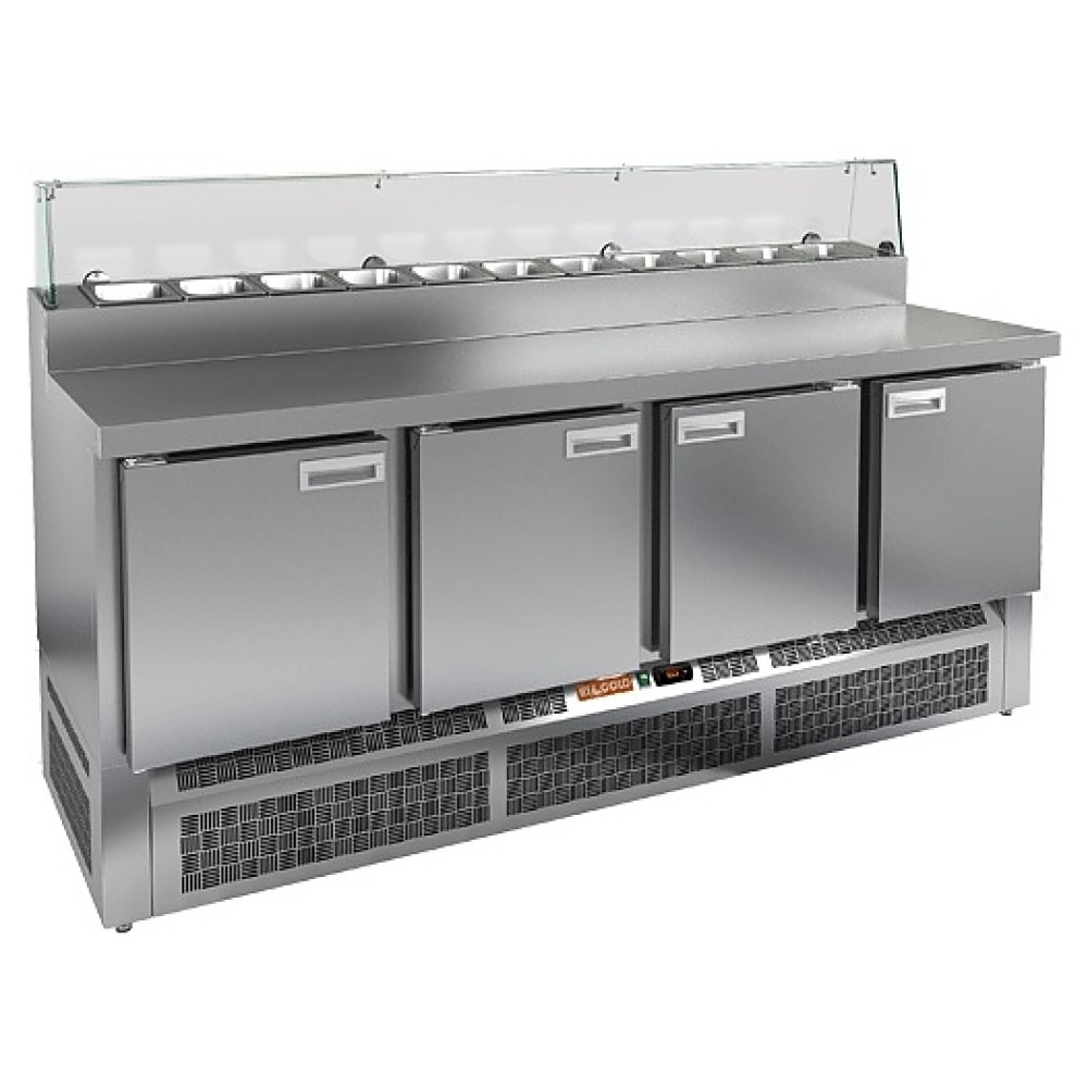 Стол для пиццы HICOLD PZE2-1111/GN используется на предприятиях общественного питания и торговли для раскатки теста и обработки ингредиентов, используемых для приготовления пиццы, салатов и других блюд, а также для охлаждения и кратковременного хранения скоропортящихся продуктов и напитков. Модель совмещает в себе рабочую поверхность и охлаждаемый объем, что значительно упрощает работу повара, так как все необходимые компоненты всегда находятся под рукой. Корпус и столешница выполнены из нержавеющей стали.