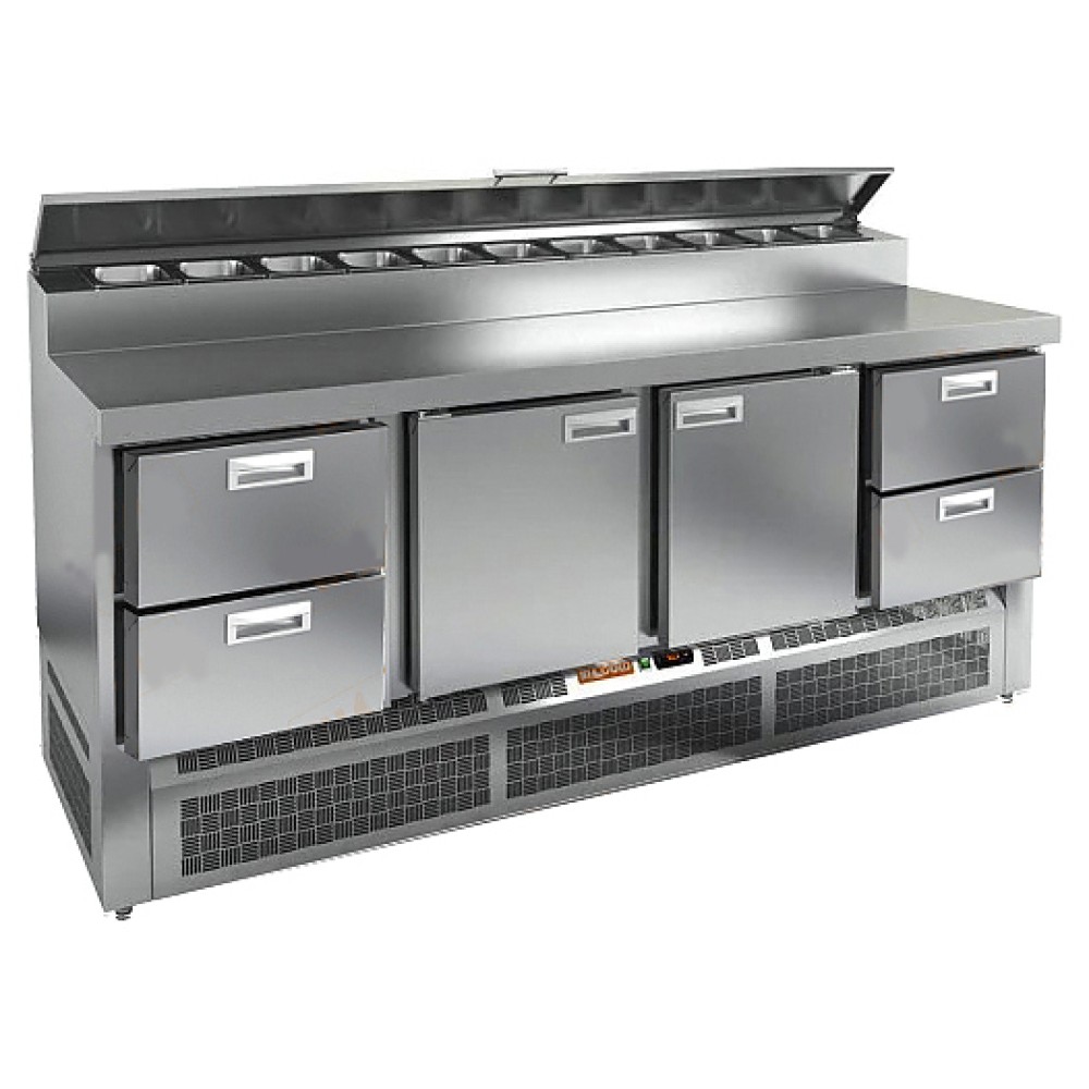 Стол для пиццы HICOLD PZE2-2112/GN используется на предприятиях общественного питания и торговли для раскатки теста и обработки ингредиентов, используемых для приготовления пиццы, салатов и других блюд, а также для охлаждения и кратковременного хранения скоропортящихся продуктов и напитков. Модель совмещает в себе рабочую поверхность и охлаждаемый объем, что значительно упрощает работу повара, так как все необходимые компоненты всегда находятся под рукой. Корпус и столешница выполнены из нержавеющей стали.