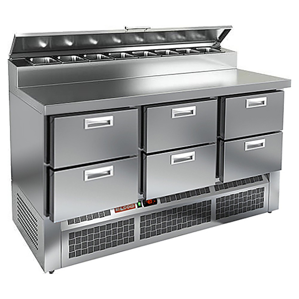 Стол для пиццы HICOLD PZE2-222/GN используется на предприятиях общественного питания и торговли для раскатки теста и обработки ингредиентов, используемых для приготовления пиццы, салатов и других блюд, а также для охлаждения и кратковременного хранения скоропортящихся продуктов и напитков. Модель совмещает в себе рабочую поверхность и охлаждаемый объем, что значительно упрощает работу повара, так как все необходимые компоненты всегда находятся под рукой. Корпус и столешница выполнены из нержавеющей стали.