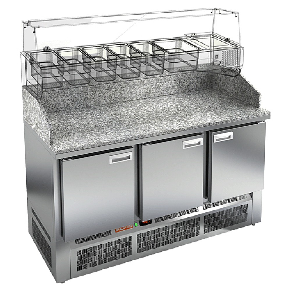 Стол для пиццы HICOLD PZE3-111/SN используется на предприятиях общественного питания и торговли для раскатки теста и обработки ингредиентов, используемых для приготовления пиццы, салатов и других блюд, а также для охлаждения и кратковременного хранения скоропортящихся продуктов и напитков. Модель совмещает в себе рабочую поверхность и охлаждаемый объем, что значительно упрощает работу повара, так как все необходимые компоненты всегда находятся под рукой. Корпус выполнен из нержавеющей стали, столешница - из гранита.