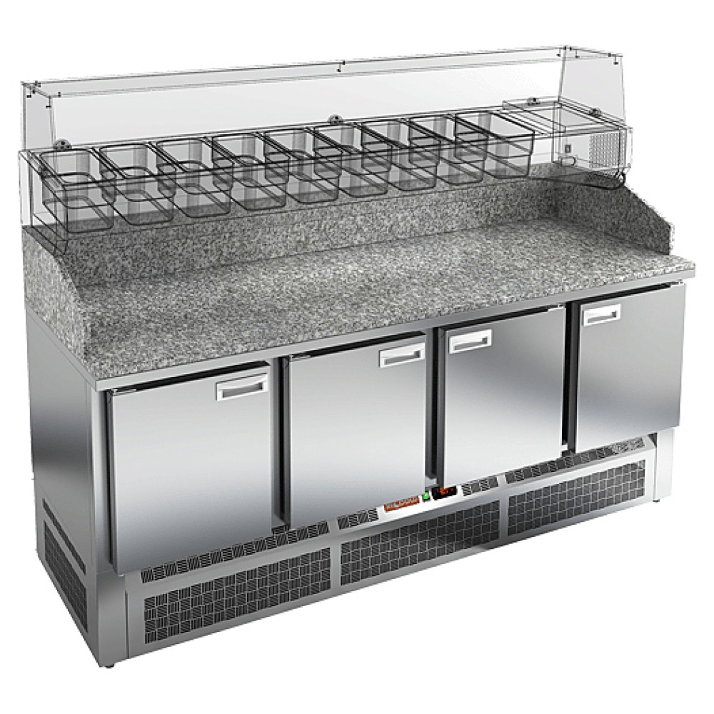 Стол для пиццы HICOLD PZE3-1111/GN используется на предприятиях общественного питания и торговли для раскатки теста и обработки ингредиентов, используемых для приготовления пиццы, салатов и других блюд, а также для охлаждения и кратковременного хранения скоропортящихся продуктов и напитков. Модель совмещает в себе рабочую поверхность и охлаждаемый объем, что значительно упрощает работу повара, так как все необходимые компоненты всегда находятся под рукой. Корпус выполнен из нержавеющей стали, столешница - из гранита.