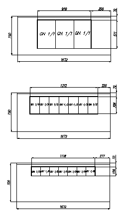 * Возможно изготовление столешницы в 3-х вариантах: под гастроемкости GN 1/1, GN 1/6 и GN 1/3.