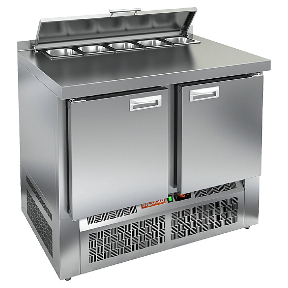 Стол для салатов HICOLD SLE2-11GN О используется на предприятиях общественного питания и торговли для хранения и обработки ингредиентов, используемых для приготовления пиццы, салатов и других блюд, а также для охлаждения и кратковременного хранения скоропортящихся продуктов и напитков. Модель совмещает в себе рабочую поверхность и охлаждаемый объем, что значительно упрощает работу повара, так как все необходимые компоненты всегда находятся под рукой. Корпус и столешница выполнены из нержавеющей стали.