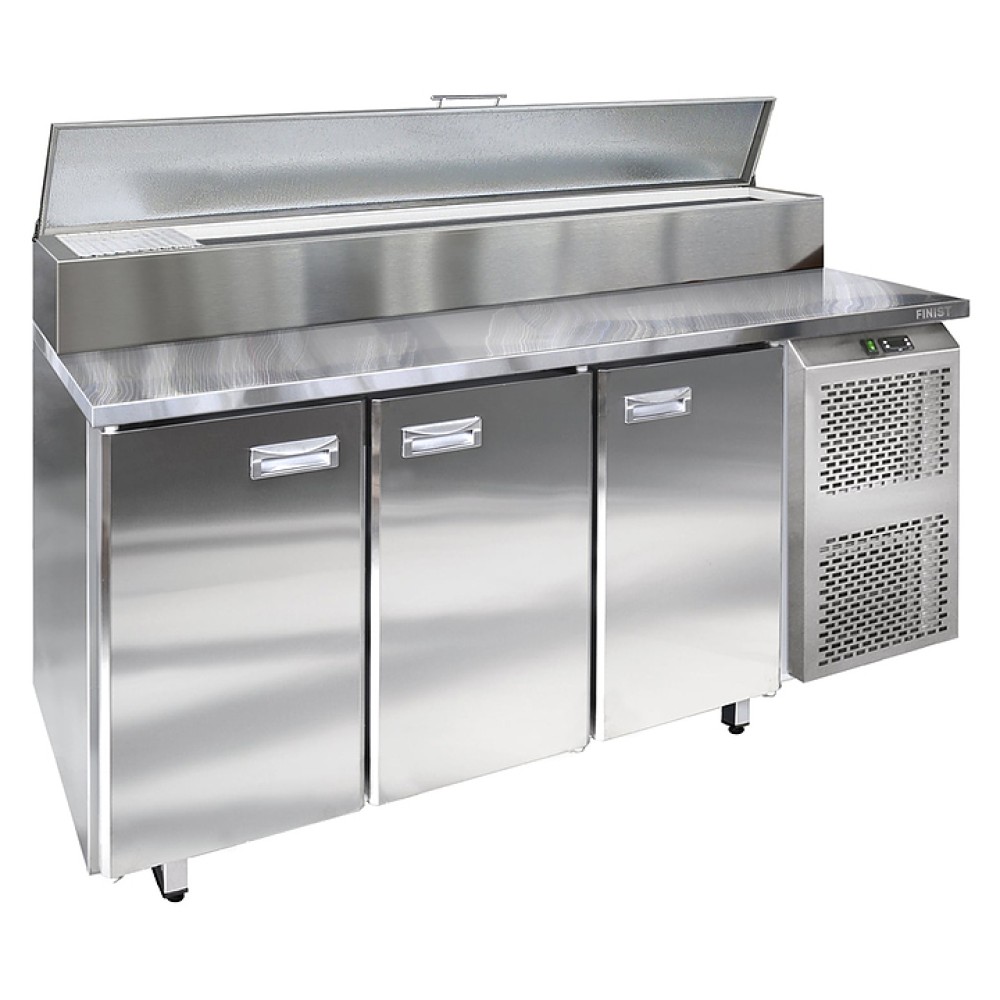 Холодильный стол Finist СХСпц-800-3 предназначен для хранения скоропортящихся полуфабрикатов из мяса, рыбы и других ингредиентов для приготовления пиццы на предприятиях общественного питания и торговли. Модель оснащена расположенным сбоку агрегатным отсеком, 3 дверьми и устойчивыми ножками. Изделие выполнено из высококачественной нержавеющей стали, которая отличается прочностью и долговечностью, не впитывает загрязнения и легко очищается.