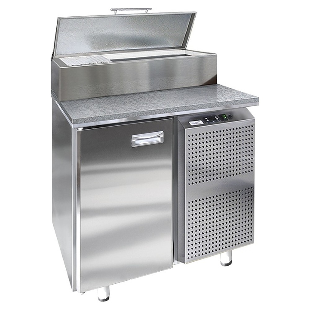 Холодильный стол Finist СХСпцг-700-1 предназначен для хранения скоро портящихся полуфабрикатов из мяса, рыбы и других ингридиентов для приготовления пиццы на предприятиях общественного питания и торговли. Модель оснащена расположенным сбоку агрегатным отсеком, столешницей с отсеком для гастроемкостей с крышкой, холодильныой камерой с распашной дверцей, устойчивыми ножками с подпятниками, кабелем питания с евровилкой и кнопочной панелью управления с цифровым дисплеем. Корпус выполнен из высококачественной нержавеющей стали, столешница – из гранита.