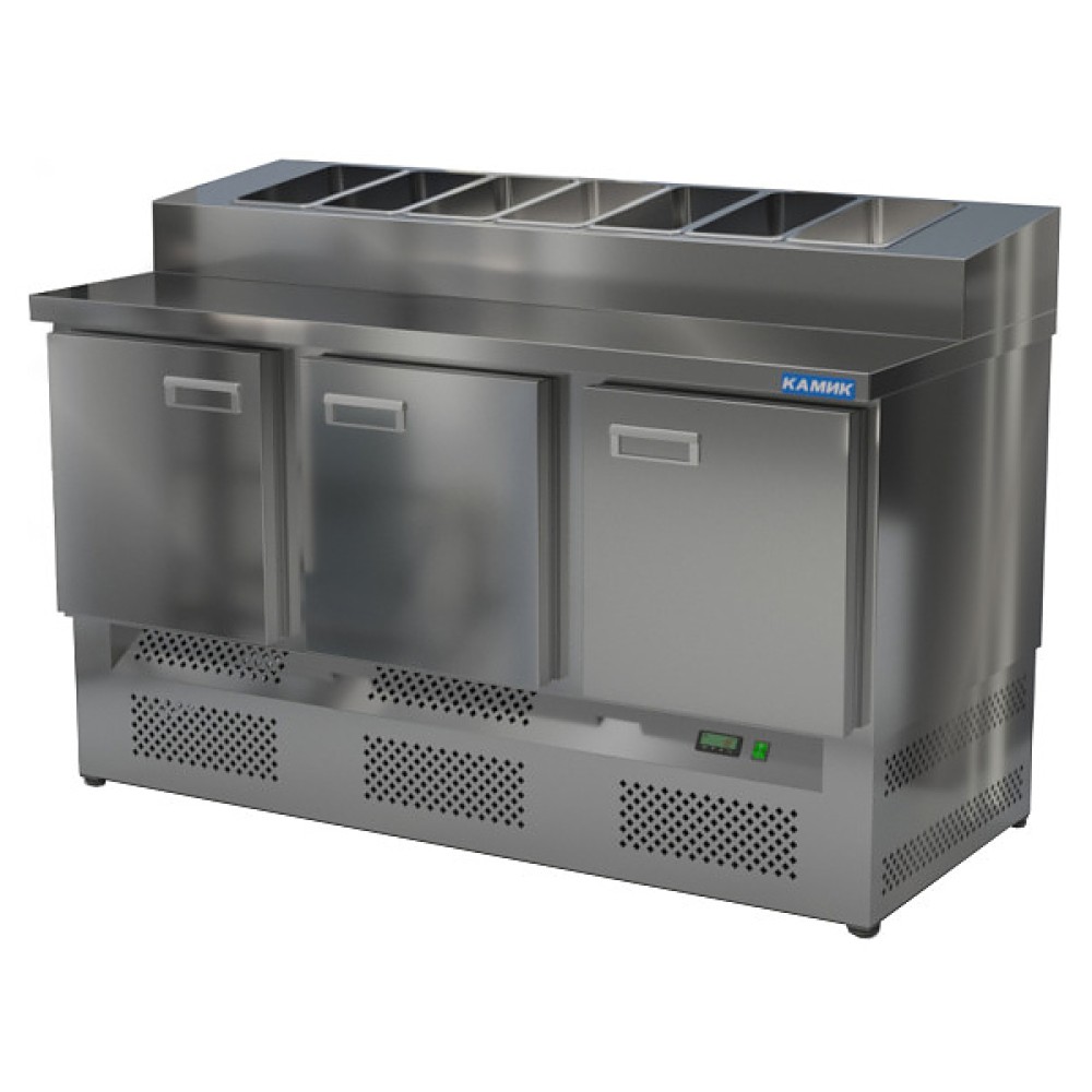 Холодильный стол КАМИК СОПН-301573 используется на предприятиях общественного питания и торговли для охлаждения и хранения продуктов, напитков и готовых блюд, а также для раскатки теста и обработки ингредиентов для приготовления пиццы. Конструкция разделена на секции, каждая секция с дверью оборудована сетчатой полкой и парой направляющих. Корпус выполнен из нержавеющей стали AISI 430 толщиной 1 мм, столешница - из нержавеющей стали AISI 304 толщиной 1 мм.