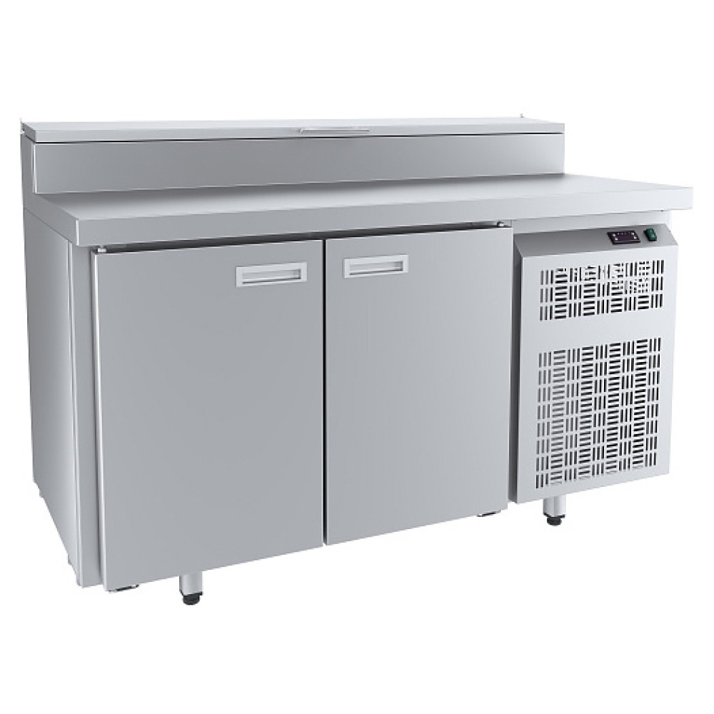 Холодильный стол ПищТех СХСП-14/7 предназначен для раскатки теста и обработки ингредиентов, используемых для приготовления пиццы, салатов и других блюд, а также для охлаждения и кратковременного хранения скоропортящихся продуктов и напитков на предприятиях общественного питания и торговли. Модель совмещает в себе рабочую поверхность, охлаждаемый объем с 2 дверцами и 2 регулируемыми по высоте полками-решетками и охлаждаемым коробом для гастроемкостей. Корпус и столешница выполнены из нержавеющей стали.