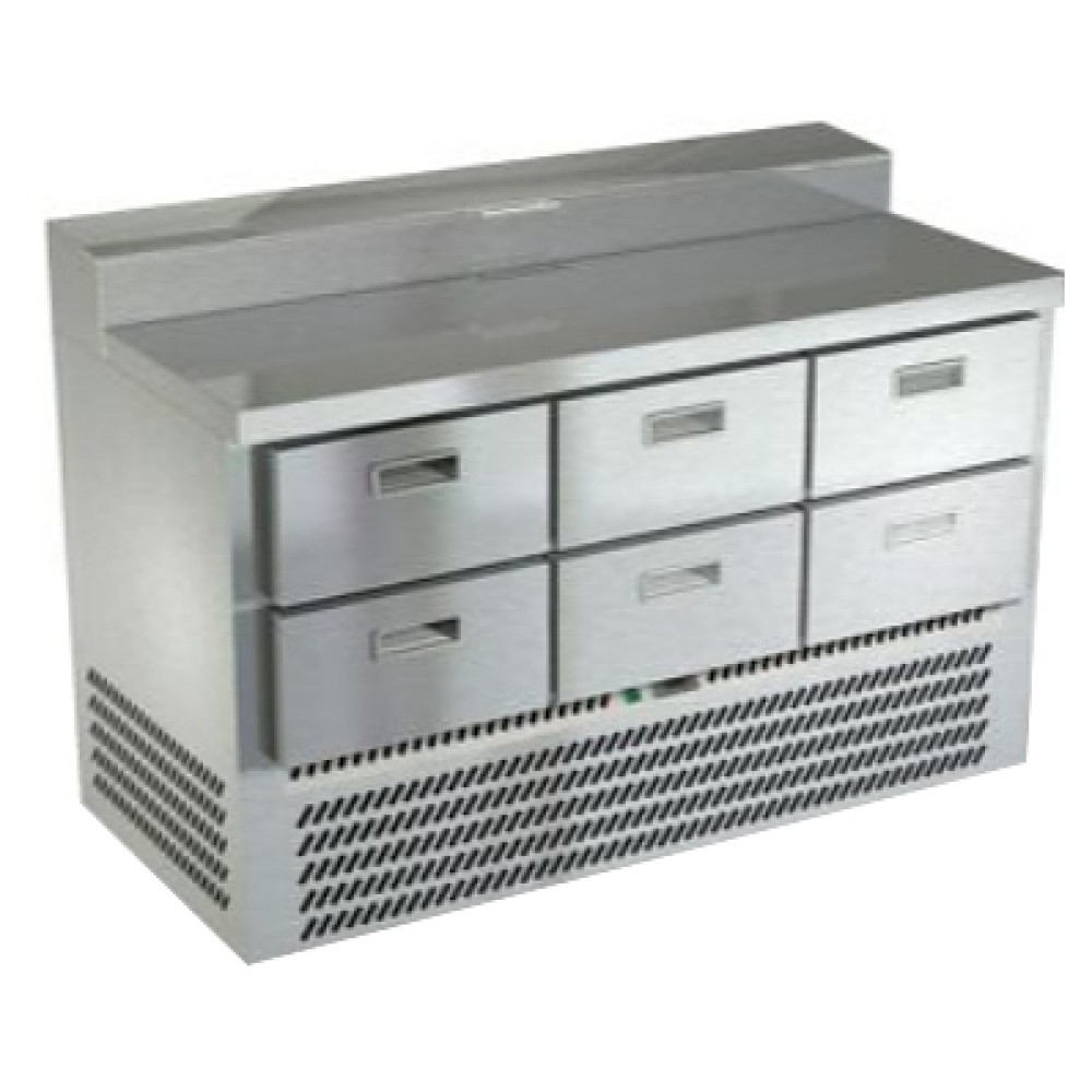 Холодильный стол Техно-ТТ СПН/П-127/06-1407 предназначен для обработки ингредиентов, используемых для приготовления пиццы, охлаждения и кратковременного хранения продуктов на предприятиях общественного питания и торговли. Модель оснащена коробом для установки гастроемкостей, крышкой, 6 выдвижными ящиками с доводчиками и регулируемыми по высоте ножками. Корпус и столешница выполнены из нержавеющей стали AISI 430, задняя стенка - из оцинкованной стали.