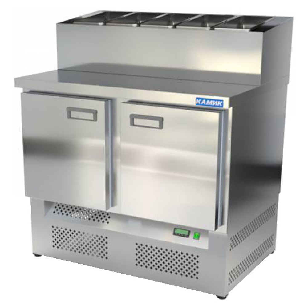 Холодильный стол КАМИК СОН-201063КН используется на предприятиях общественного питания и торговли для охлаждения, демонстрации и кратковременного хранения ингредиентов для приготовления салатов, напитков и готовых блюд. Конструкция разделена на секции, каждая секция с дверью оборудована сетчатой полкой и парой направляющих. Корпус выполнен из нержавеющей стали AISI 430 толщиной 1 мм, столешница - из нержавеющей стали AISI 304 толщиной 1,5 мм.