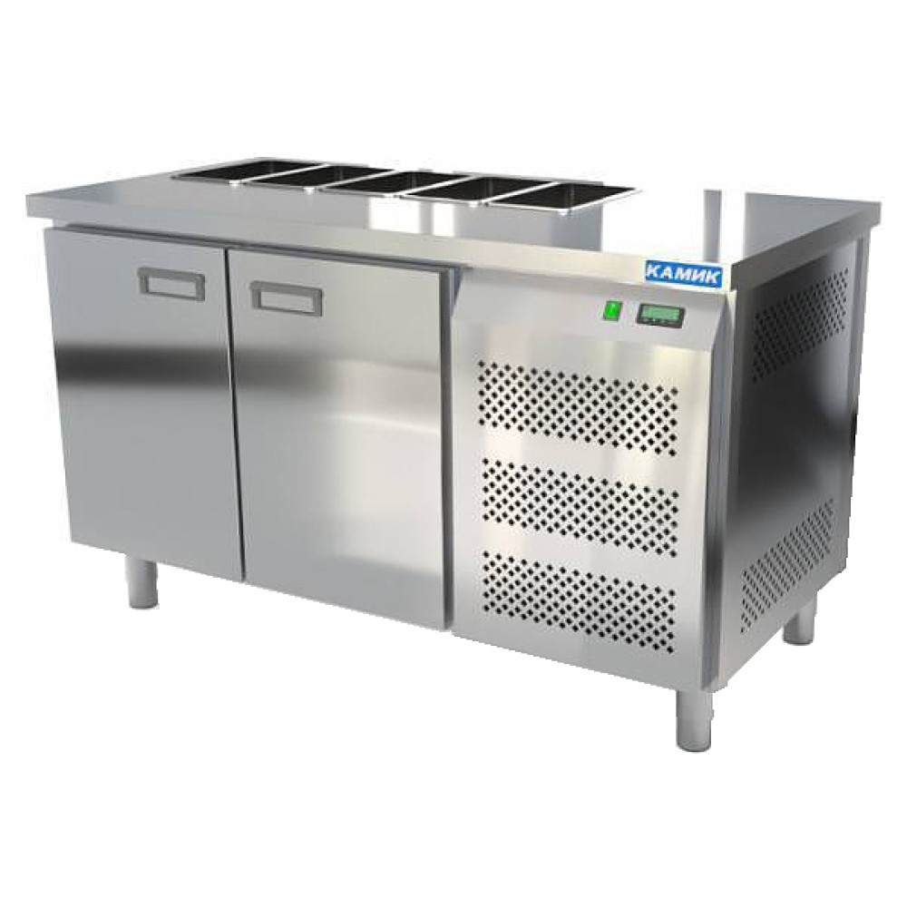 Холодильный стол КАМИК СОН-201463К используется на предприятиях общественного питания и торговли для охлаждения, демонстрации и кратковременного хранения ингредиентов для приготовления салатов, напитков и готовых блюд. Конструкция разделена на секции, каждая секция с дверью оборудована сетчатой полкой и парой направляющих. Корпус выполнен из нержавеющей стали AISI 430 толщиной 1 мм, столешница - из нержавеющей стали AISI 304 толщиной 1,5 мм.