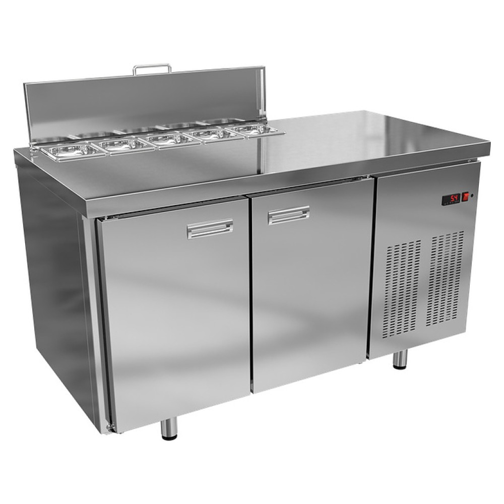 Холодильный стол KRONER СХС 2-140-70 предназначен для обработки и сохранения свежести ингредиентов для холодных закусок и салатов на предприятиях общественного питания и торговли. Модель оснащена встроенным компрессорным холодильным агрегатом с боковым расположением, столешницей без борта, интегрированным в столешницу салат-баром с откидной крышкой для размещения гастроемкостей, электронной панелью управления и холодильной камерой с 2 секциями с распашными дверьми. Корпус и столешница выполнены из шлифованной нержавеющей стали, задняя стенка – из оцинкованной стали.