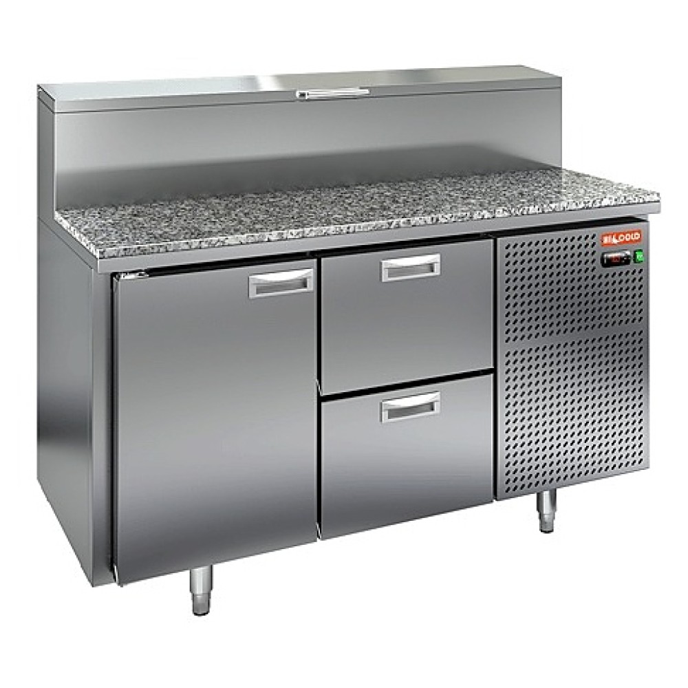 Охлаждаемый стол для пиццы HICOLD PZ1-12/GN (1/3) выполнен из нержавеющей стали марки AISI-304. Верх стола накрыт каменной столешницей.
