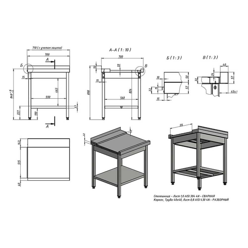 Стол для чистой посуды KAYMAN СПМ-322/0707 используется на предприятиях общественного питания и торговли совместно с посудомоечными машинами TATRA TW.H50+DR и TW.H50+DR+DD. Модель оснащена разборным каркасом из трубы, направляющими, плоским бортом и обвязкой с 4 сторон. Стол устанавливается справа от оборудования и имеет крепление на левой части. Столешница выполнена из нержавеющей стали AISI 304, каркас - из нержавеющей стали AISI 430.