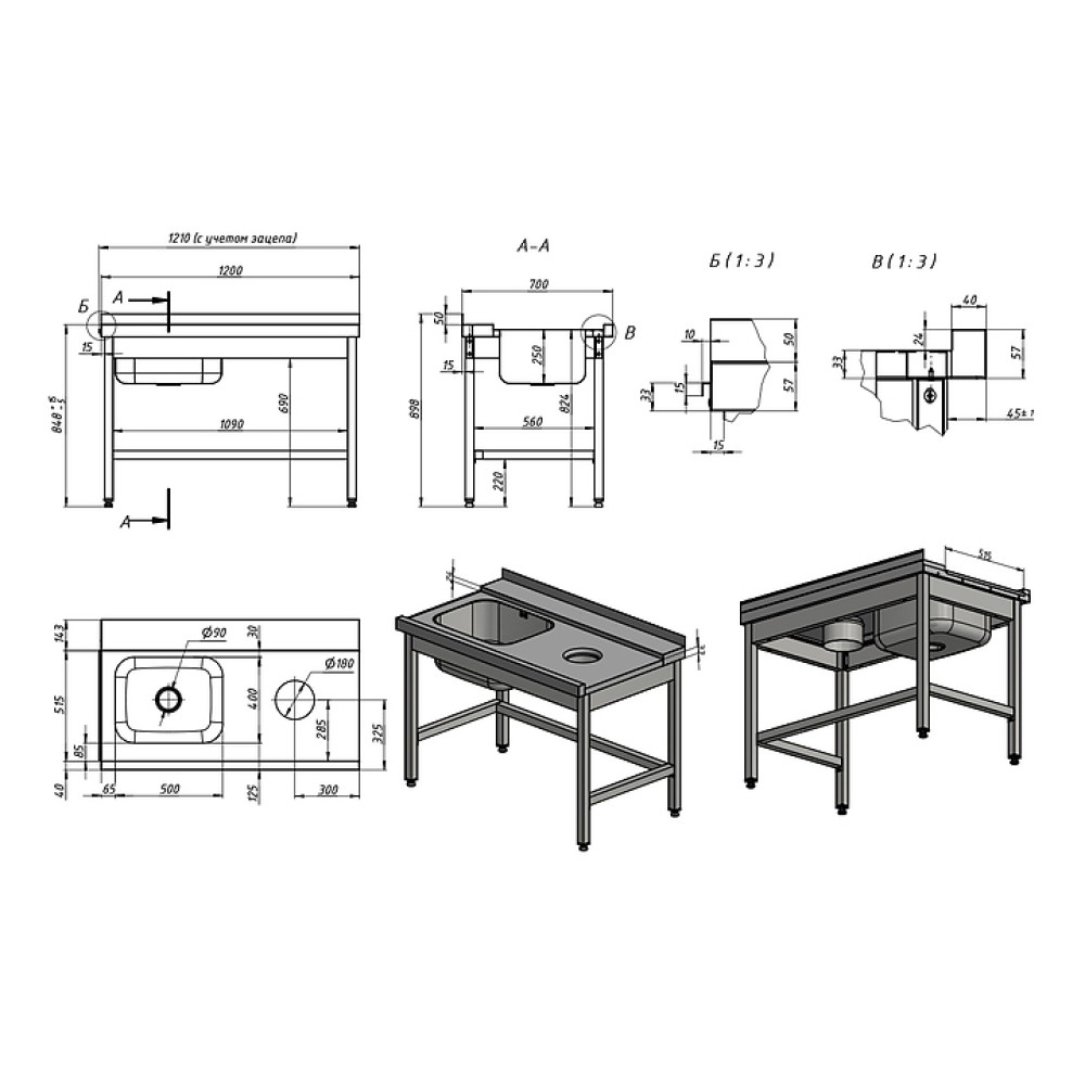 | Высота850 мм | Глубина700 мм | Ширина1200 мм |