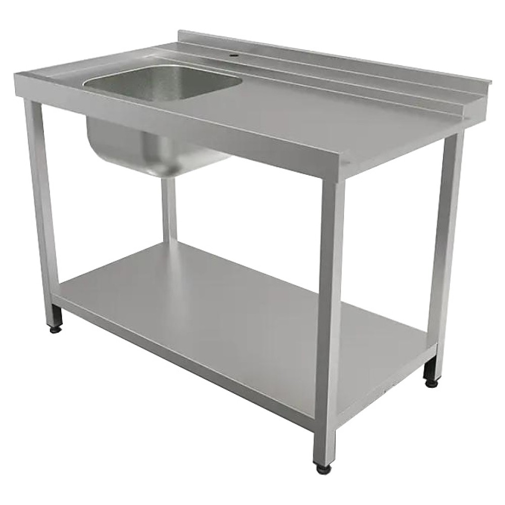 Входной стол для посудомоечной машины Кобор СПМ/2-120/70/Л используется на предприятиях общественного питания и торговли. Модель оснащена бортом, отверстием под смеситель и полкой в нижней части. Сварной каркас выполнен из нержавеющей трубы, столешница - из нержавеющей стали AISI 430, усиление - из ЛДСП.