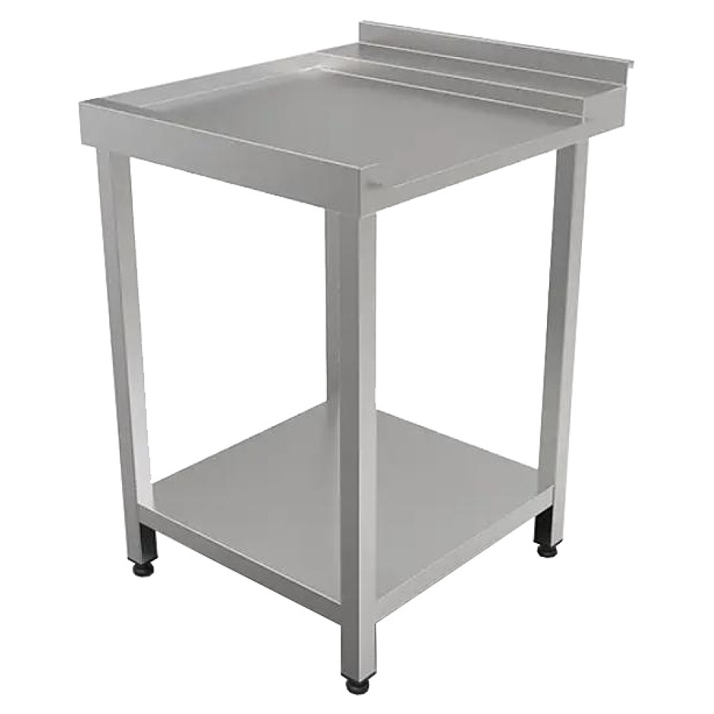 Выходной стол для посудомоечной машины Кобор СПМ/2-60/70/Л используется на предприятиях общественного питания и торговли. Модель оснащена бортом и полкой в нижней части. Сварной каркас выполнен из нержавеющей трубы, столешница - из нержавеющей стали AISI 430, усиление - из ЛДСП.