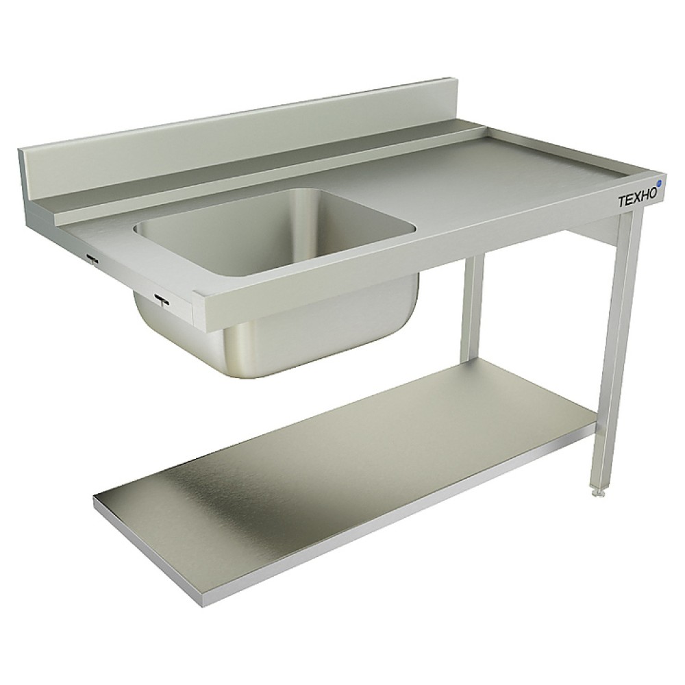 Навесной стол Техно-ТТ СПК-533/1307Л предназначен для совместного использования с посудомоечными машинами Apach для расстановки и хранения посуды и кухонного инвентаря на предприятиях общественного питания и торговли. Модель оснащена цельнотянутой емкостью, бортом, полкой и регулируемыми по высоте ножками. Разборный каркас выполнен из трубы 40х40х1,2 мм нержавеющей стали AISI 430, полка - из нержавеющей стали AISI 430, столешница - из нержавеющей стали AISI 304.