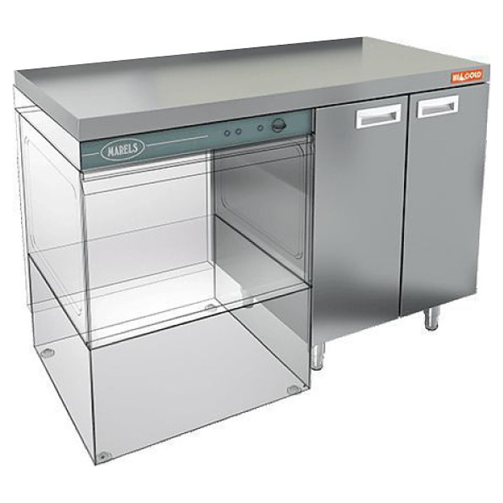 Стол HICOLD НБМСЗКП-12/7Л предназначен для комплектации модульных барных стоек на предприятиях общественного питания и торговли. Модель оснащена закрытым отделением с 2 распашными дверьми, устойчивыми опорами и столешницей с расположенным с левой стороны крылом для установки под него посудомоечной машины. Корпус и столешница выполнены из высококачественной нержавеющей стали AISI 430, столешница усилена листом древесно-стружечной плиты (ДСП). Изделие поставляется в сборе.